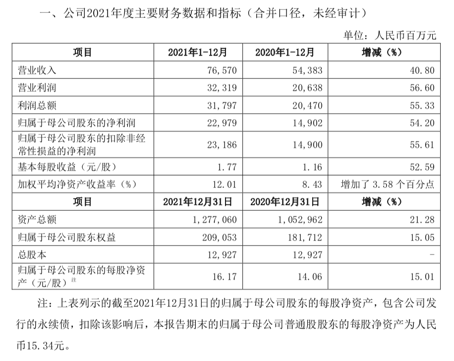 “一哥”打响上市券商2021年度业绩快报披露第一枪。