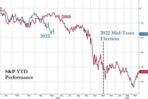 截至收盘,道指止步三连涨,在四个交易日里首次下跌,创去年3月来新低。标普、纳指和纳指100均从昨日所创的5月6日以来高位回落,标普创一年新低并重新逼近熊市(从52周新高跌18.6%)。纳指和罗素小盘股接近抹去上周四以来全部涨幅,纳指100刷新2020年11月来最低: