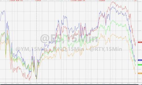 盘中,道指最深跌1260点或跌3.9%,失守3.2万点整数位。标普大盘最深跌近178点或跌4.3%,失守4000点,11大板块悉数下跌。纳指最深跌603点或跌5%,纳指100最深跌677点或跌5.4%,失守1.2万点。价值股居多的罗素2000小盘股最深跌4.1%并失守1800点。