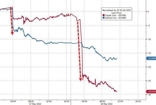 昨日跌超11%同创1987年来最差表现的美国第一大零售商沃尔玛,周三再跌近7%,刷新2020年7月来最低,沃尔玛昨日一季报也反映出利润受到成本上涨和高通胀的挤压。