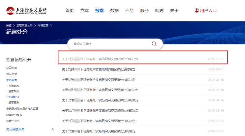 值得关注的是,上交所近期已许久未对个人投资者名下账户采取限制交易的纪律处分,上一波处分还是发生在2018年期间。