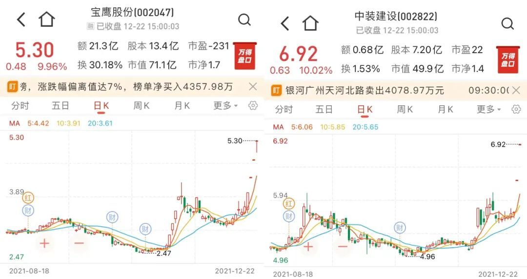 12月22日,连板股总龙头三羊马收到深交所关注函,要求确认是否存在应披露而未披露的重大信息,公司基本面是否发生重大变化,并被关进“小黑屋”。据悉,次新股三羊马自11月30日上市后,打开一字涨停板后还有超10个涨停,上市16天已是16连板。最新三羊马报96.23元/股,总市值达77亿元。