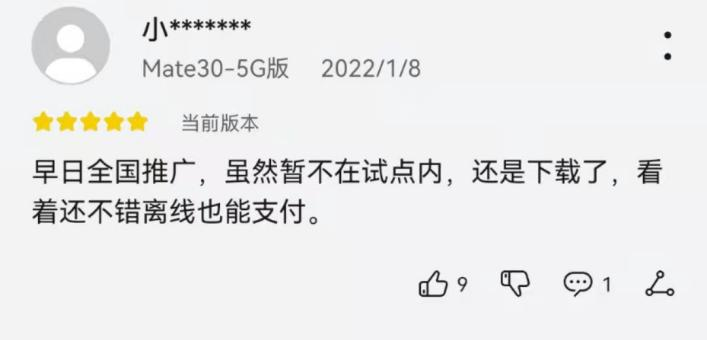 也有用户为数字人民币App建言献策,希望进一步丰富功能。还有用户表示,希望试点地区继续扩大,自己也能早日使用上数字货币。