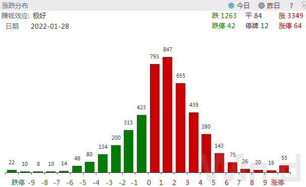 从1月28日涨跌个股分布来看,上涨个股超过3300家,涨停公司数亦达55家,较此前一个交易日,市场情绪明显回暖。