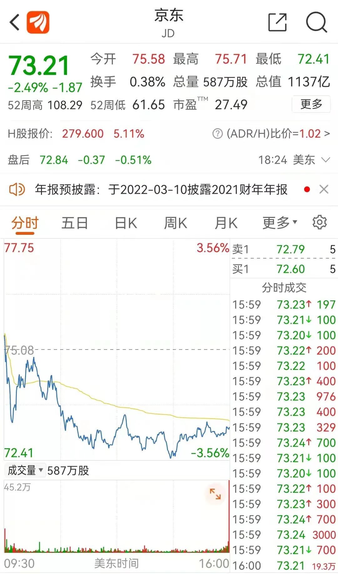 京东在发布上述公告之后,盘前股价上涨1.11%。不过,截至收盘,股价回落下跌招商证券表示,对京东2022年的前景保持乐观,主要驱动因素:一是在更好的商家运营,以及“二选一”禁令的助力下,3P业务的快速增长;二是凭借强大的供应链能力持续在下沉市场获得成功。