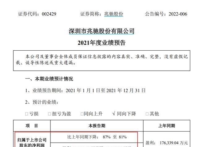 28日晚间,兆驰股份发布2021年业绩预告:预计2021年全年归属净利润盈利2.3亿元至3.3亿元,同比上年下降81%至87%。